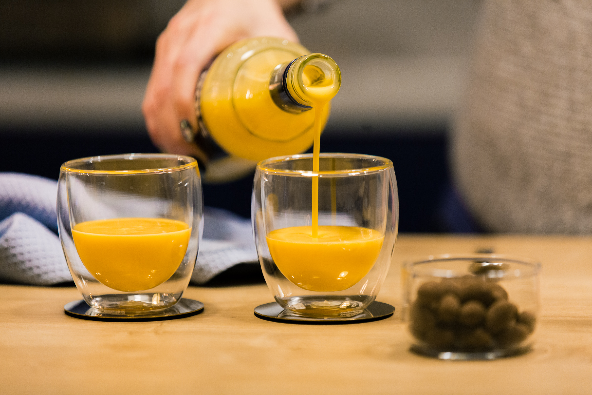 1. Töltsd először a tojáslikőrt az átlátszó falú hőálló pohárba.