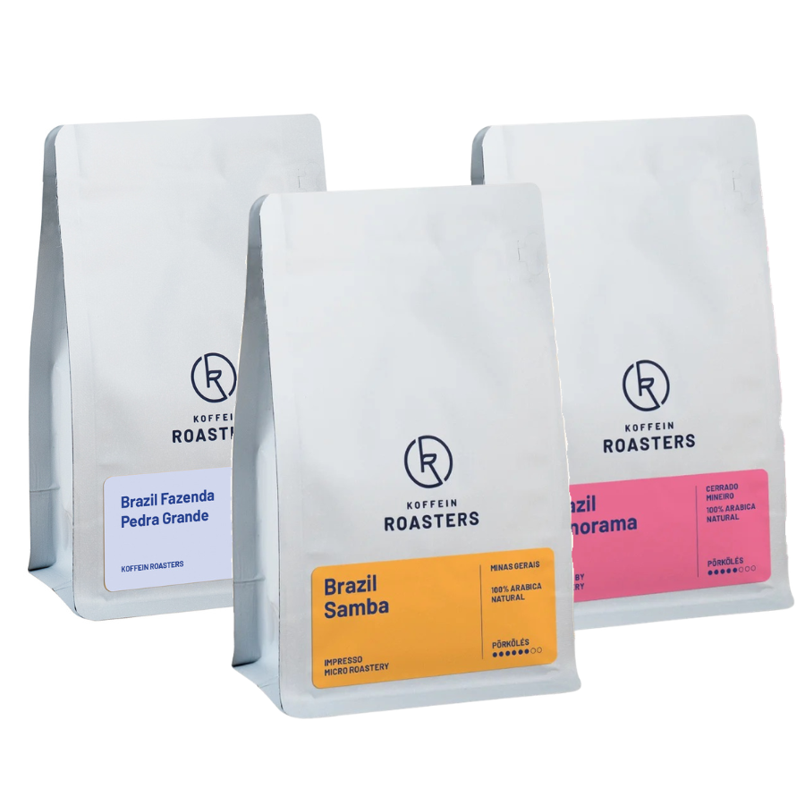 Három komoly Brazilt hoztunk össze ebben a csomagban, amelyek mindegyike más-más pörkölőben készült, illetve a zöldkávé Brazilián belül más termelők, szövetkezetek keze munkáját dicséri. A csomag tartalmazza az alábbi tételeket: Impresso Micro Roastery Brazil Samba a Minas Gerais régióból; Coffer By Mobstery Brazil Panorama Cerrado Mineiro régióból, ami szintén más-más kistermelők munkájából származik, és végül de nem utolsó sorban a Koffein Roasters saját Brazil Fazenda Pedra Grande tétele is helyet kapott a válogatásban. A közepes pörkölésű kávék mindegyike kiváló espressot ad, de tejjel is csodás elegyet alkotnak. Érdemes őket összehasonlítani azonos eszközön elkészítve, azonos körülmények mellett. Brazil kávék szerelmeseinek must have.
