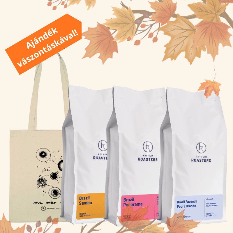 Brazil Samba – lágy, közepesen pörkölt kávé diós jegyekkel, jól működik tejes italokhoz is, 100 % arabica